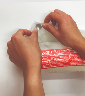 Our InstaWarmer heat pack uses phase-change materials combined with a thermal buffer to generate long-lasting and safe warmth. Our pack works like a thermal battery, storing heat from boiling or autoclaving. It can be activated at anytime by simply clicking the disk located in the corner of the pack. Once activated you can see warmth spreading throughout the pack, and it can be used immediately.